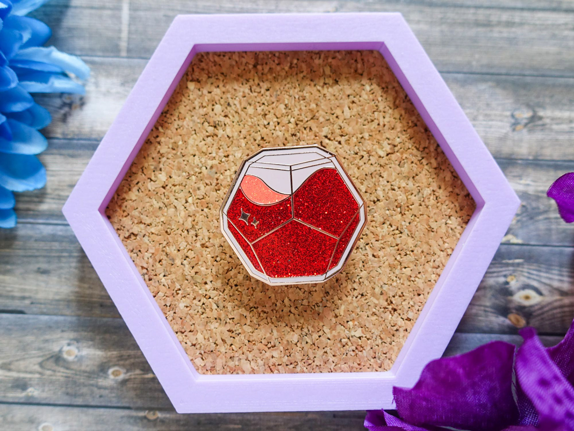 The collection started off with the blue engram drink then expanded into four other transparent "iced drink" stickers. Later the engram drink design was modified to become the full "drink menu" of six enamel pins whose names were inspired by the lore entries and fans of the community from of a popular video game franchise.